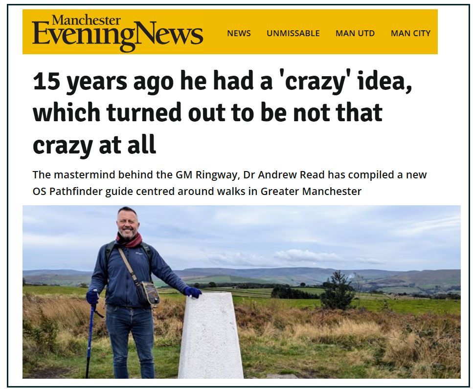 One article is focused on the GM Ringway’s founder, Dr Andrew Read, which talks about how Andrew developed the concept of the GM Ringway trail, and how that led to him being commissioned to edit a new book of Greater Manchester circular walks. You can now read that interview here via MSN (avoiding the MEN paywall).