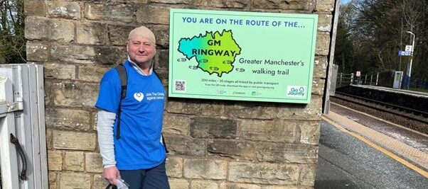 Andy Bradley, who was diagnosed with a brain tumour last year, is taking on the GM Ringway walking challenge to raise funds for The Christie NHS Foundation Trust in Manchester. The 59 year-old chartered surveyor from Knutsford – who is walking the full 200-mile length of the trail in individual stages – has already raised over £10,000 for the Trust’s charitable arm, The Christie Charity.