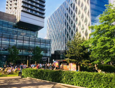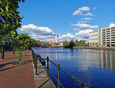 There are countless refreshment opportunities on this stage of trail, first of all at Hotel Football (at the 3.5-mile/5-km point) and 1 mile/1.6 km later in and around MediaCity. There is a café at Ordsall Hall when the museum is open. Once the trail reaches crosses the Irwell, at the 6-mile/9.6-km point near Aviva Studios, you will pass a massive number of bars, cafes and restaurants in the city centre.